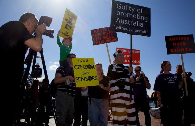 I love the way this image has come together. It’s from a rally protesting the impositions being put on photographers in Australia, and a combination of having photographers in the image, a costumed protester, great placards (I especially love the lack of an apostrophe in ‘Don’t’ – it points to how photographers can’t spell) and even the lens flare doesn’t detract.