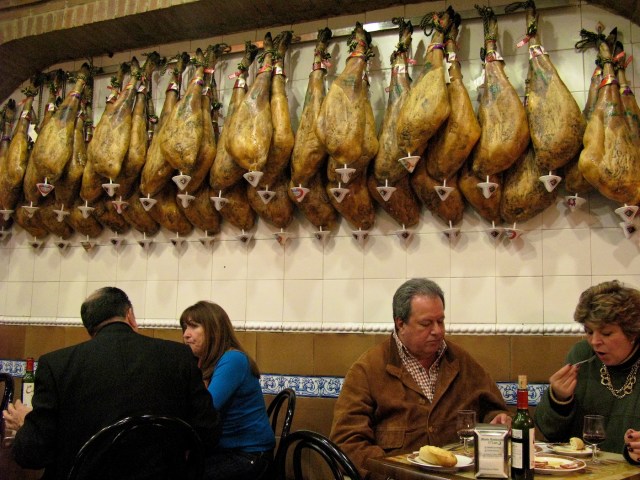 Travel broadens the mind, at least partly because they do things differently away from home. This image, shot in Madrid, has meat just hanging up in the eating area of a restaurant – you won’t see this in Australia.