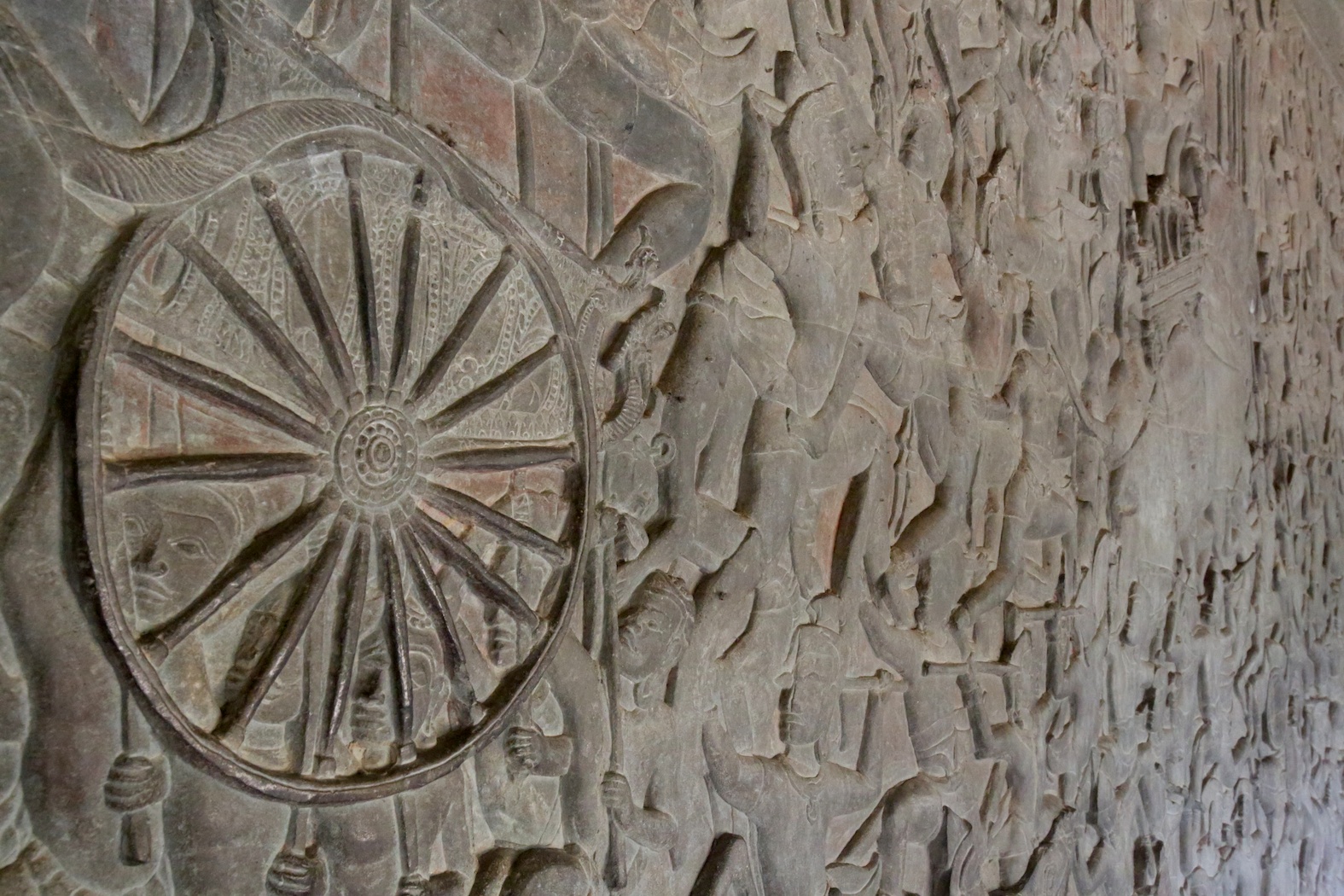 Depicting the battles of the past and the deities prayed to, the massive walls of Angkor Wat display amazing scenes.